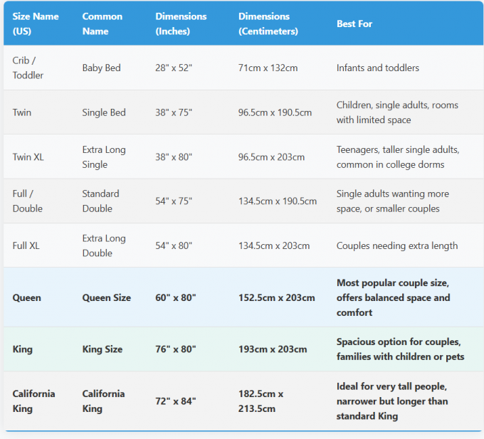 Alle bedmaten beschikbaar, inclusief speciale afmetingen